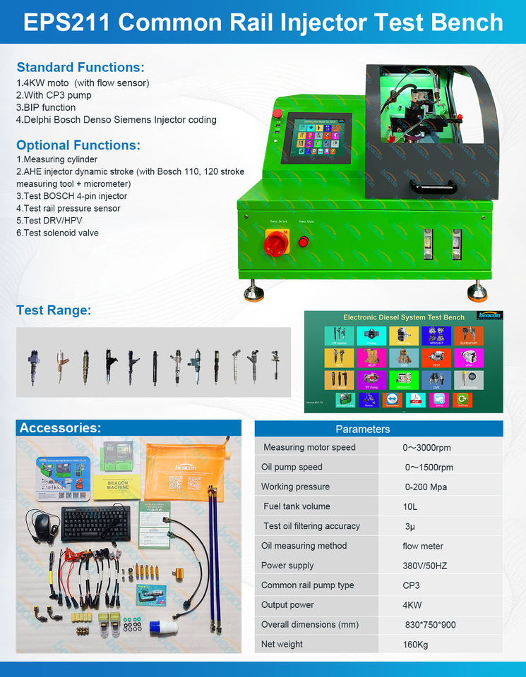 Máquina de Prueba de Inyectores Diesel de Riel Común de Alta Presión Beacon Machine Eps211, Banco de Pruebas de Inyectores Piezoeléctricos Eps205 Eps200