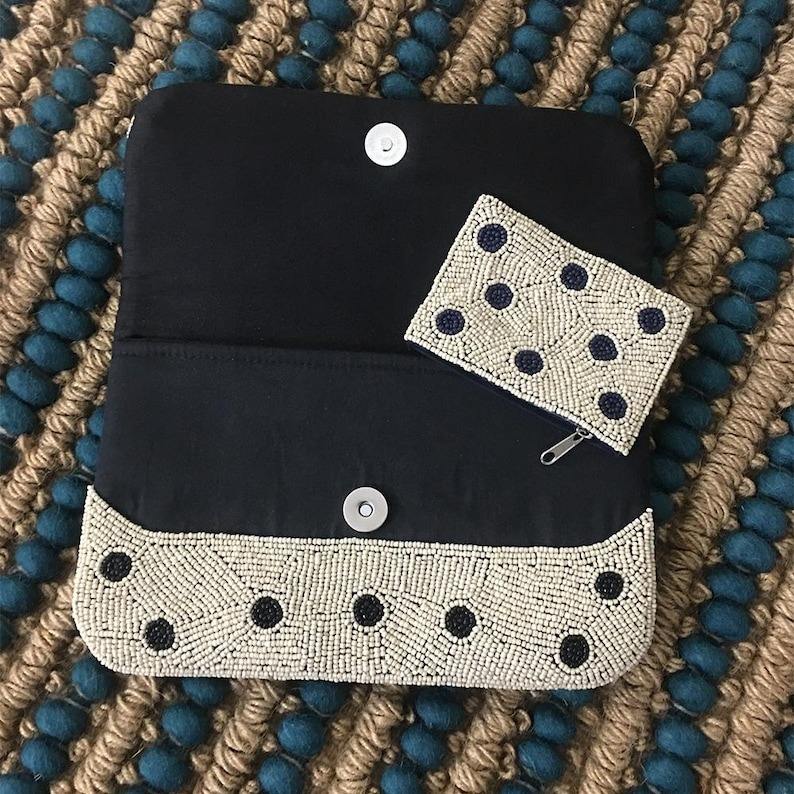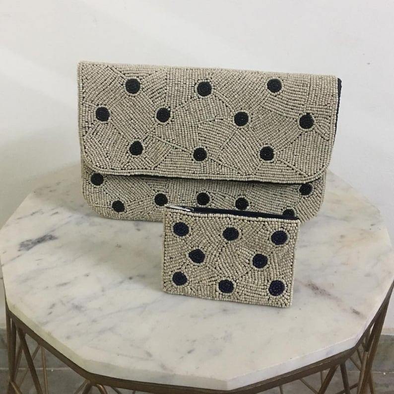 Bolso de Mano Clásico de Algodón con Cadena de Cuentas HUSSAIN CRAFTS, Personalizado, para Mujer, con Serigrafía, Colores Mezclados, para Fiestas