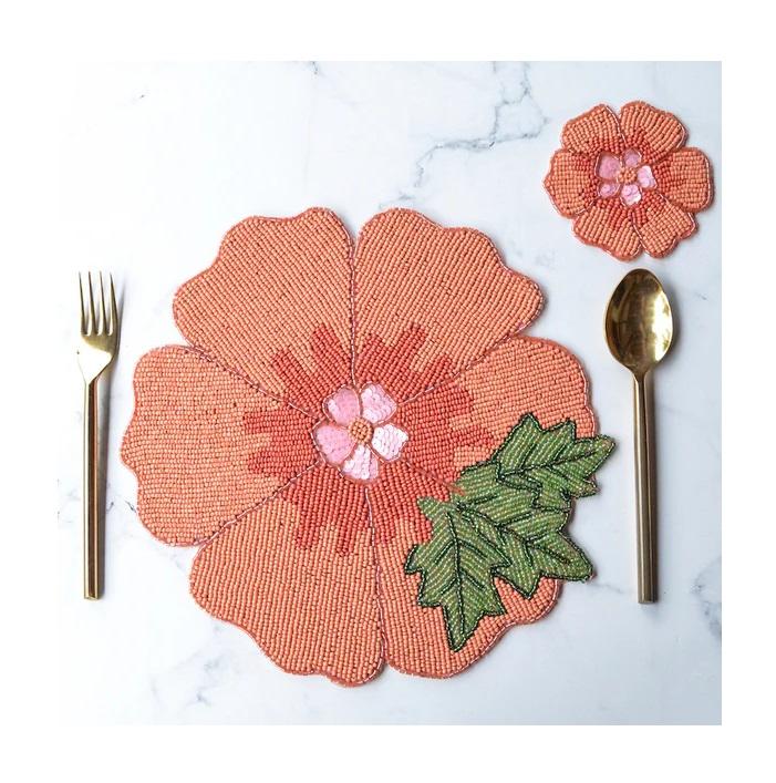 Posavasos con cuentas de cristal de Color personalizable diseño en forma de flor-hoteles para bodas fiestas precio bajo Mesa acento Pad/Mat