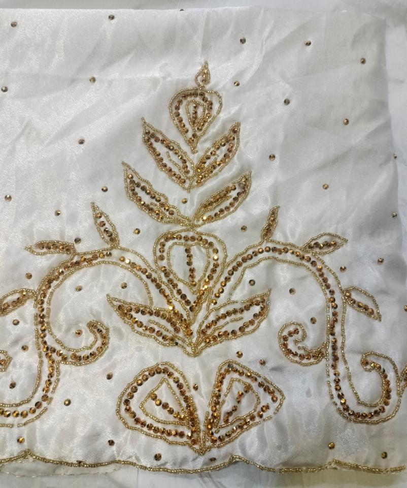 Tela de Satén con Bordado de Cuentas, Sólida, Metálica, Ecológica, Dobby, Accesorios de Boda, Diseñador, Somali Gogra Garbasaar