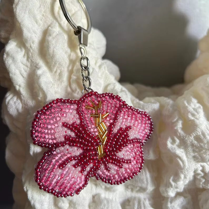 Llavero de flores con cuentas, abalorio de bolsa de semillas de cristal hecho a mano