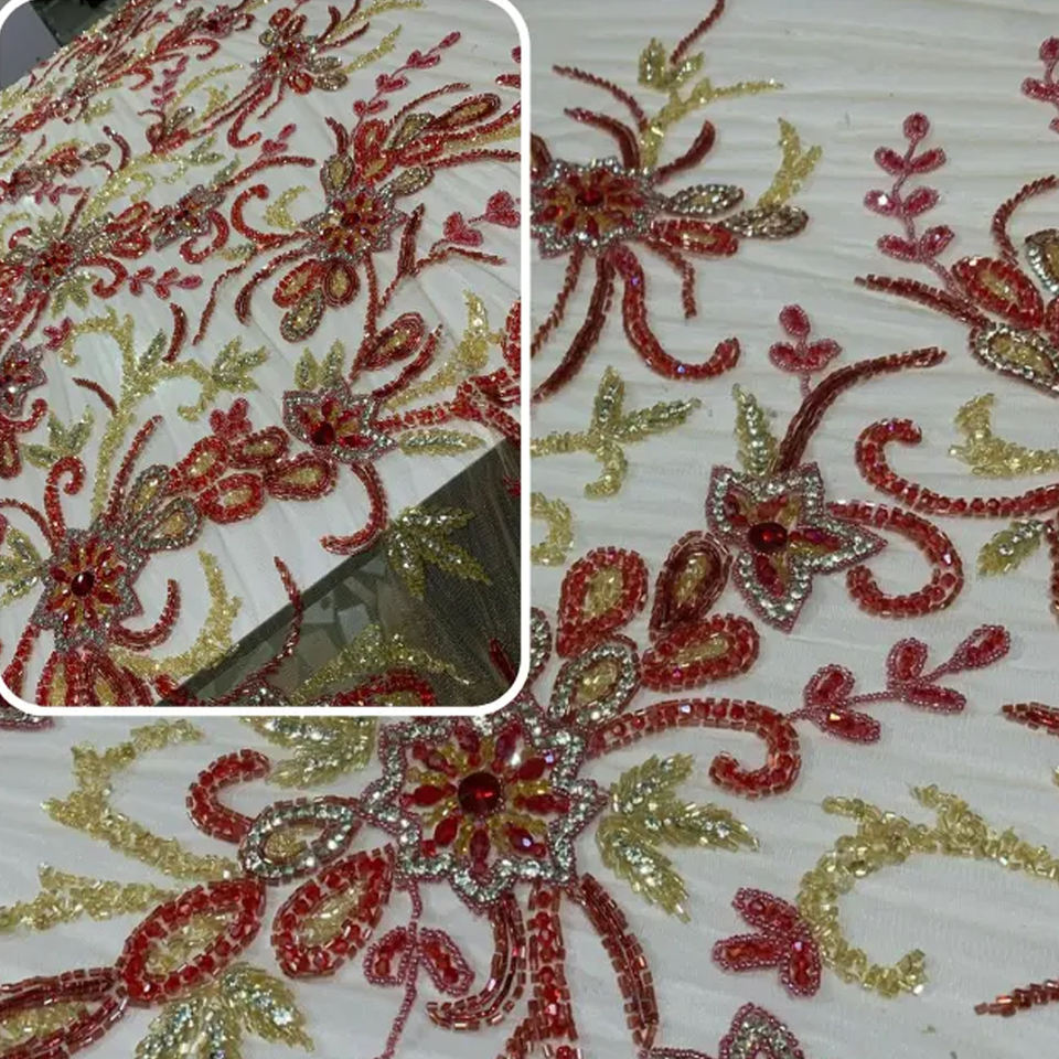 Tela de Organza de Lujo con Lentejuelas y Bordado Multicolor de Alta Calidad para Vestidos de Mujer de Diseñador