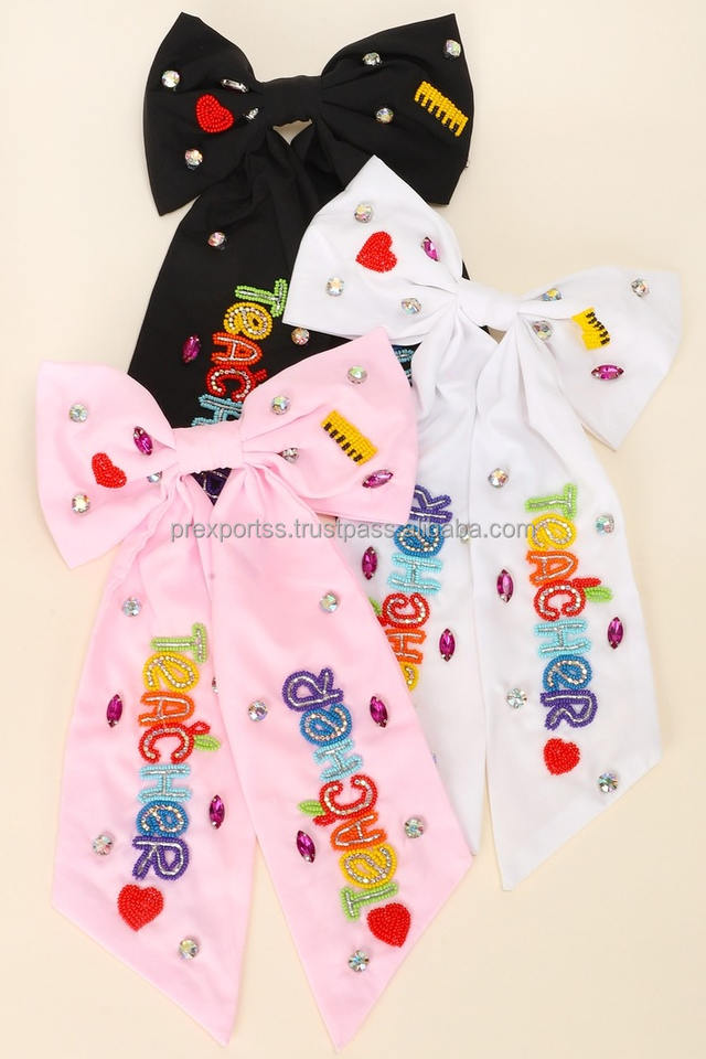 Lazo para el pelo multicolor con cuentas para niñas y mujeres, accesorio de satén con pedrería, ideal para la vuelta al colegio, profesoras, lazos con clip, regalo para fiestas, tamaño de caja.