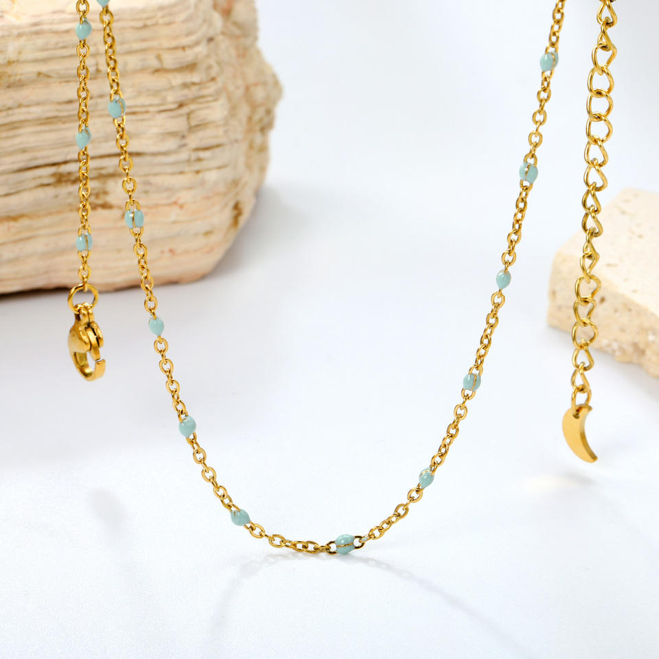 Collar de cuentas con cadena dorada y cuentas coloridas para mujer, estilo veraniego, cadena para clavícula, diseño simple y delicado