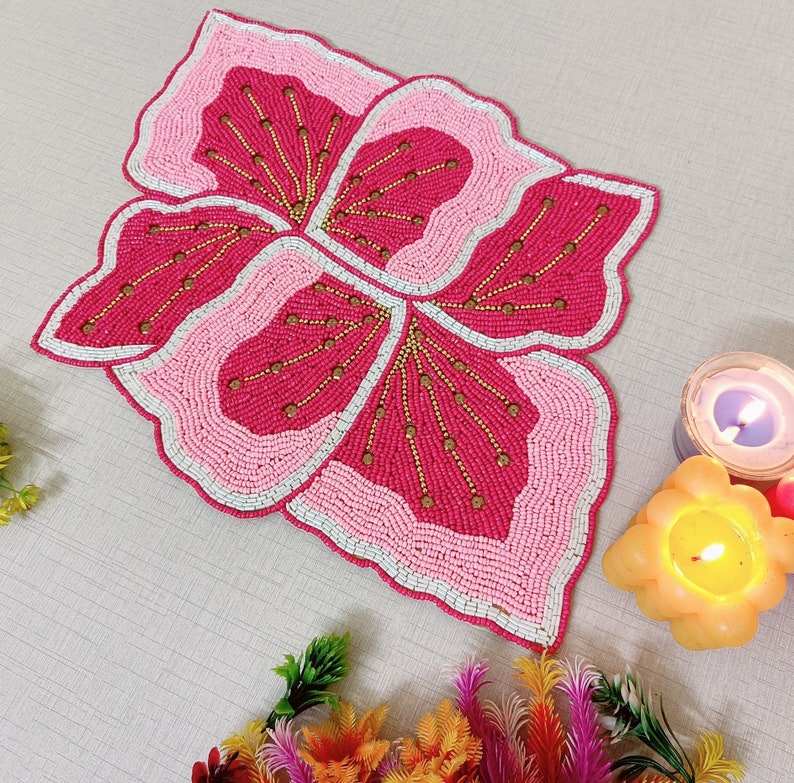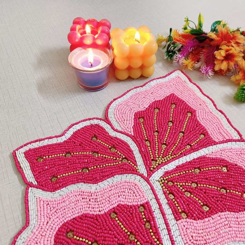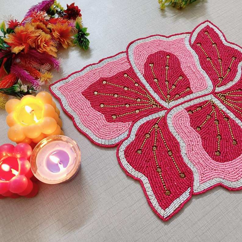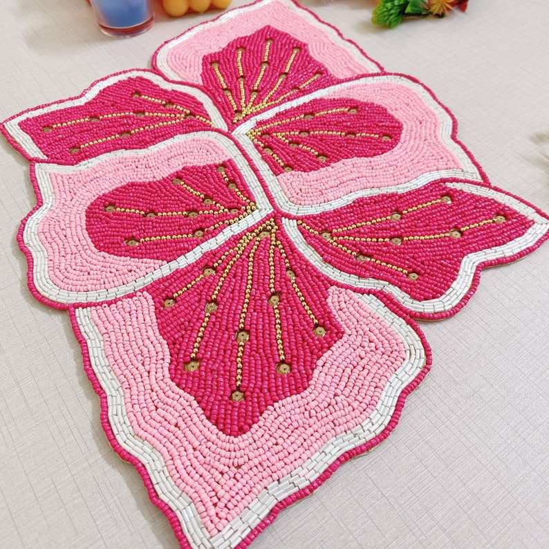 Mantel Individual con cuentas, cargador redondo hecho a mano para comedor de lujo y decoración de vacaciones, pieza única hecha a mano con cuentas, mantel, inauguración de la casa