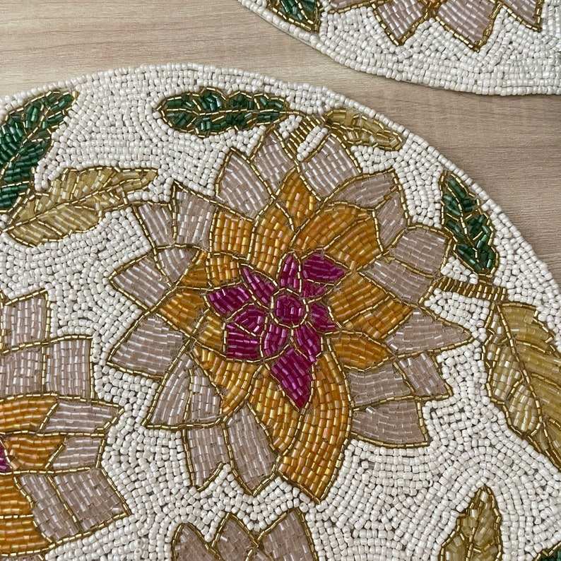 Mantel Individual con cuentas, cargador redondo hecho a mano para comedor de lujo y decoración de vacaciones, pieza única hecha a mano con cuentas, mantel, inauguración de la casa