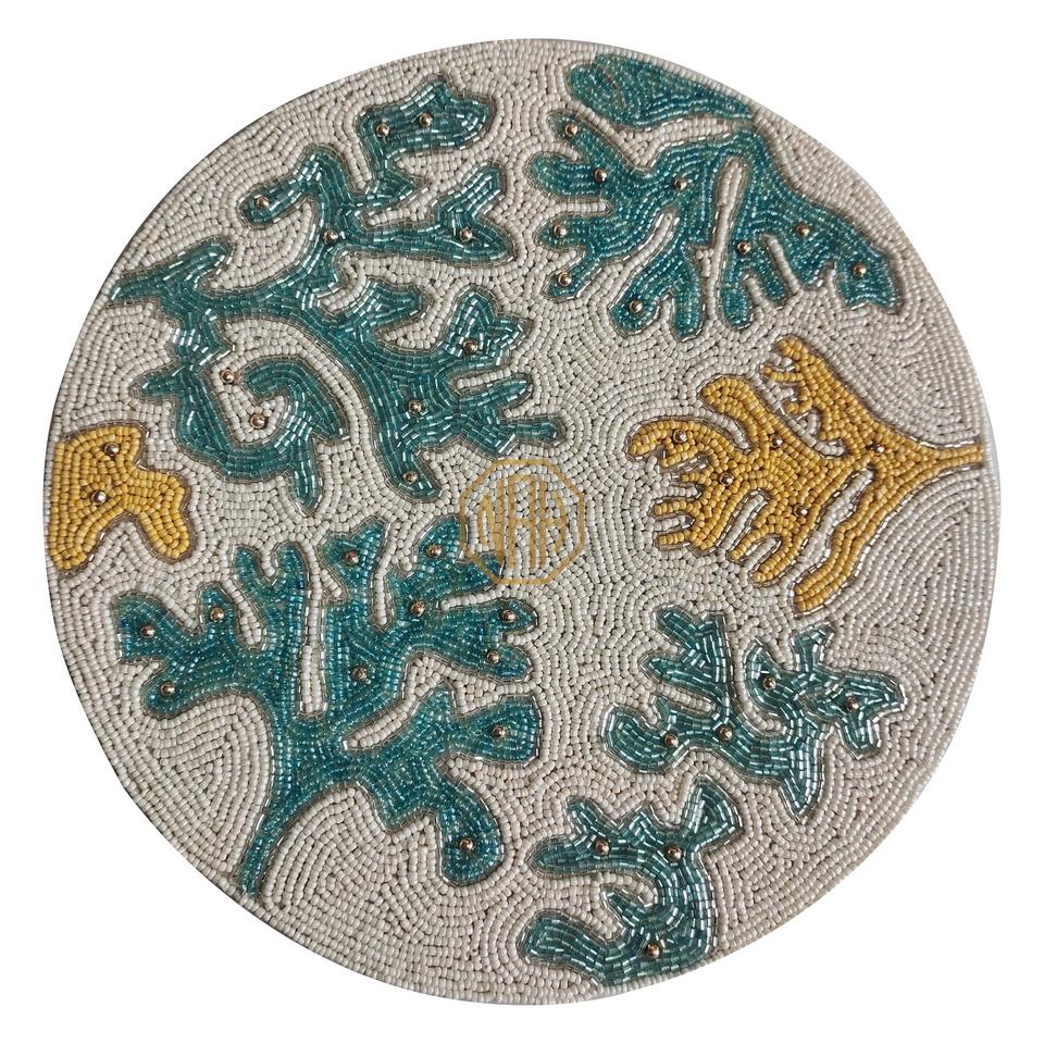 Manteles individuales decorativos de algodón con cuentas, redondo mantel hecho a mano, diseño adornado, exportador directo de fábrica, proveedor mayorista a granel