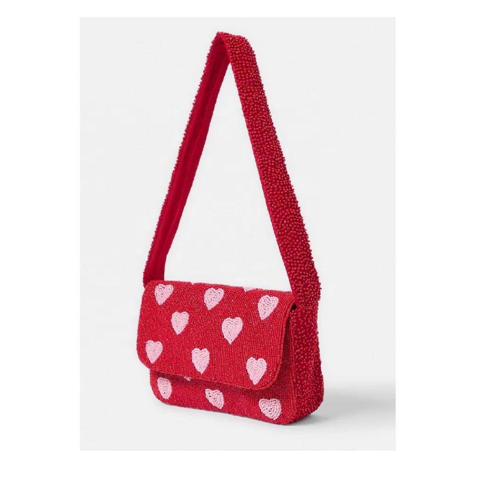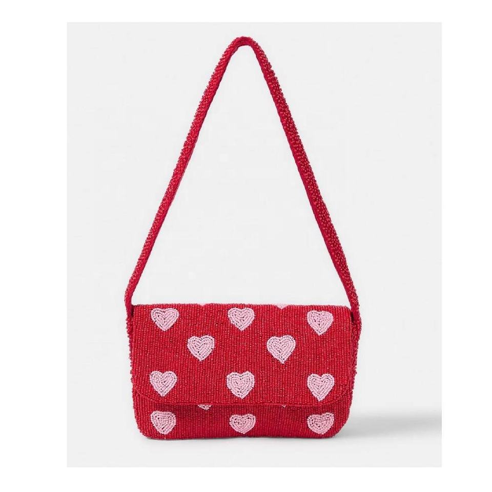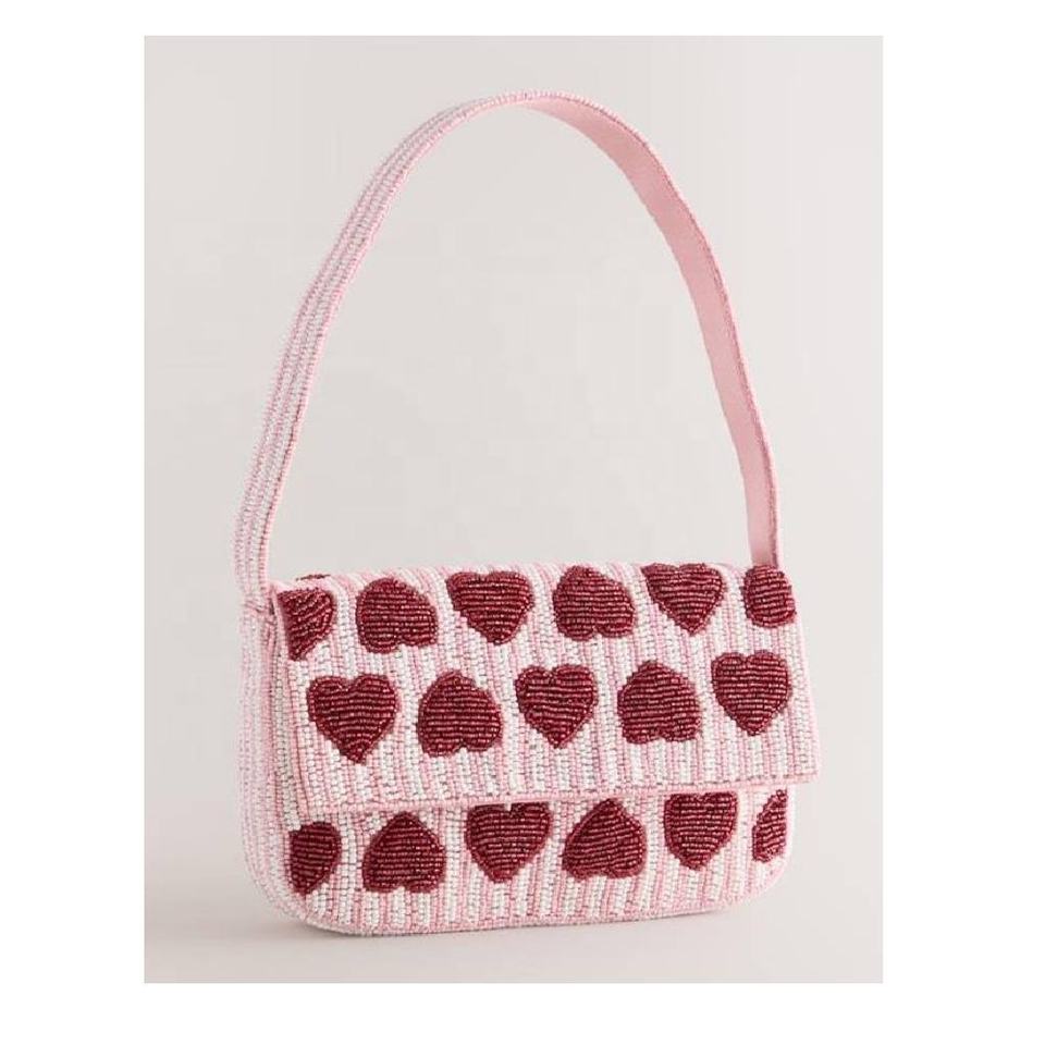 Bolso de Hombro Portátil con Bordado de Cuentas y Patrón de Corazón para Mujer, Tamaño Pequeño, Guarda Artículos Personales y Accesorios, Regalo para Chicas