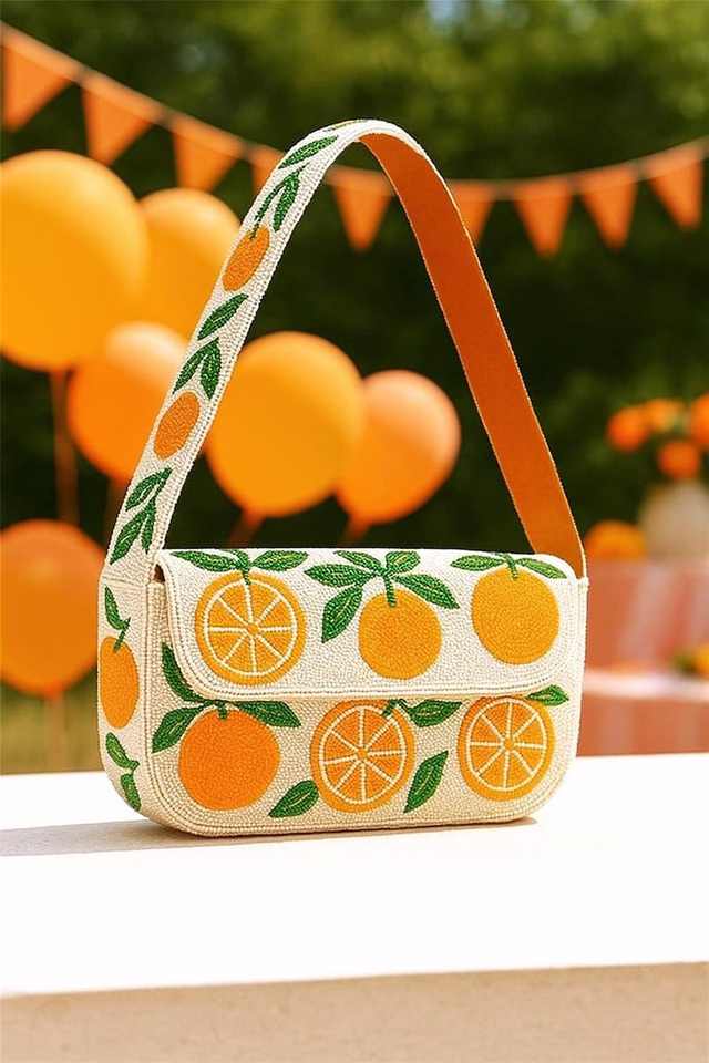 Bolso de hombro con cuentas, bolso de limón, bolso de la costa de Amalfi, bolso temático italiano, bolso de verano, estampado de limón