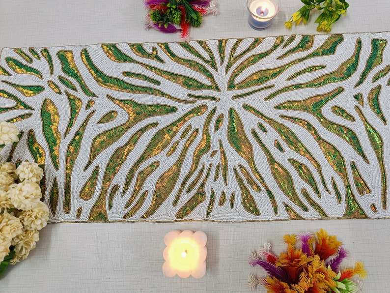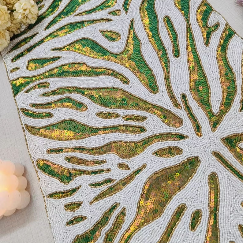 Mantel individual y almohadillas para mesa con cuentas, decoración elegante para el hogar y protector funcional para mesas de comedor
