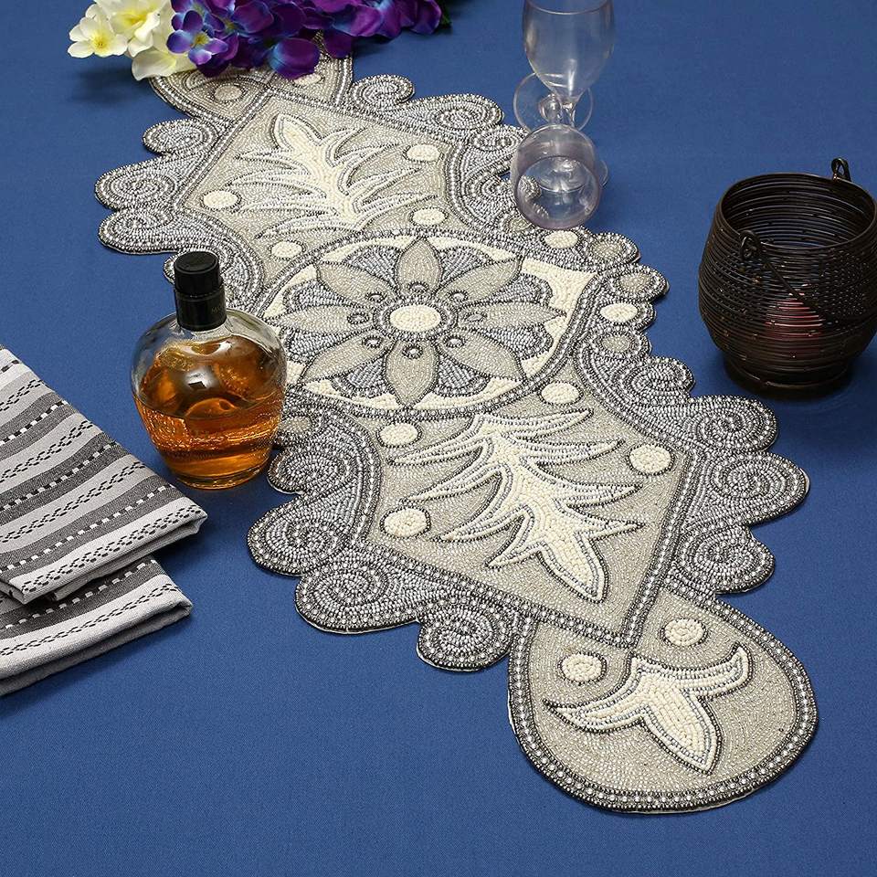 Camino de mesa con cuentas, 36 pulgadas, gris, varios Navidad, decorativo, mesa de granja, tapete