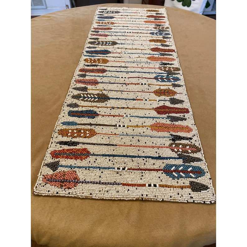 Camino de mesa con cuentas Flechas coloridas Acción de Gracias Cuentas pequeñas Vintage