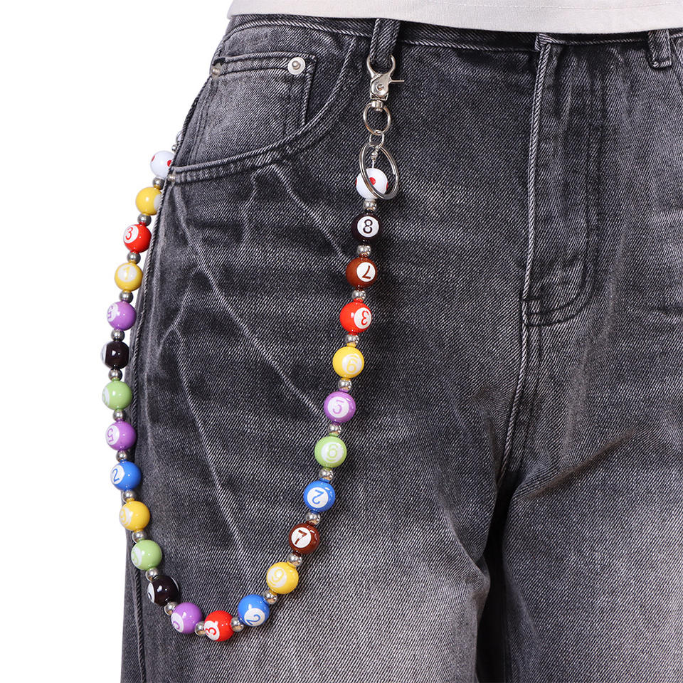 Cadena de cintura con cuentas, diseño de números, aleación de zinc, doble anillo, estilo hip hop, cadena para pantalones para uso diario