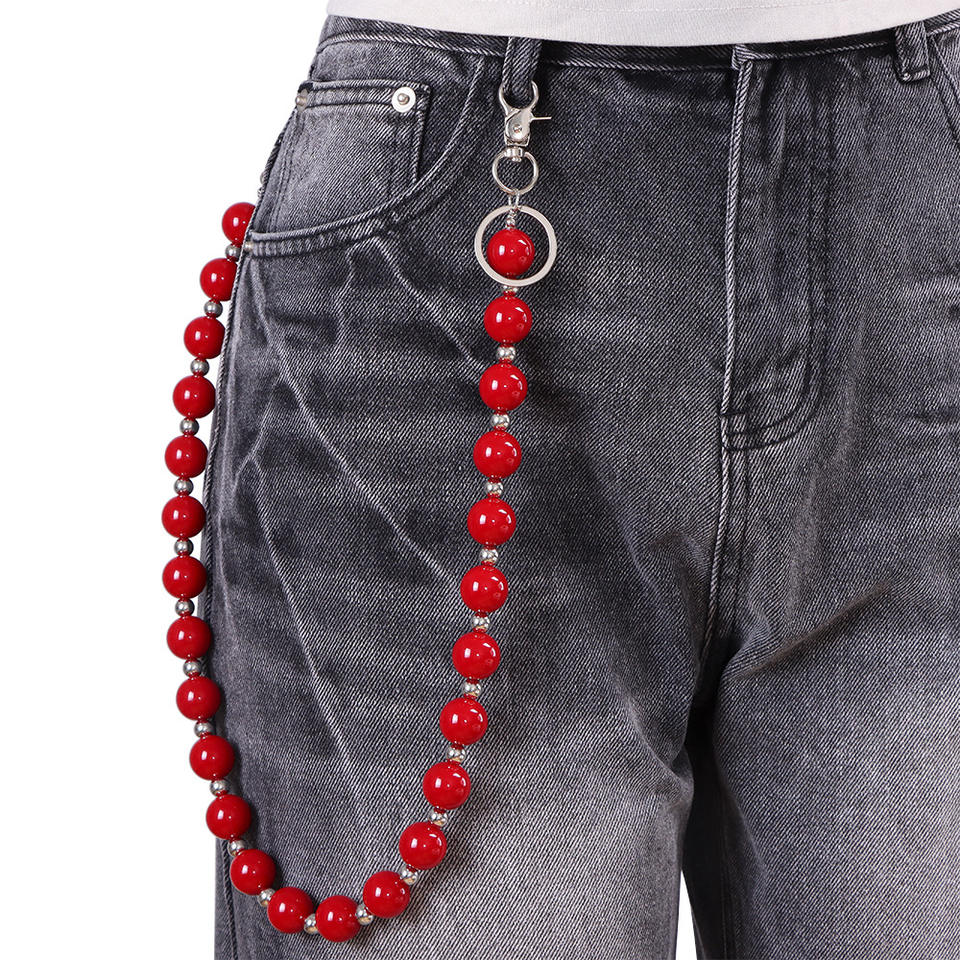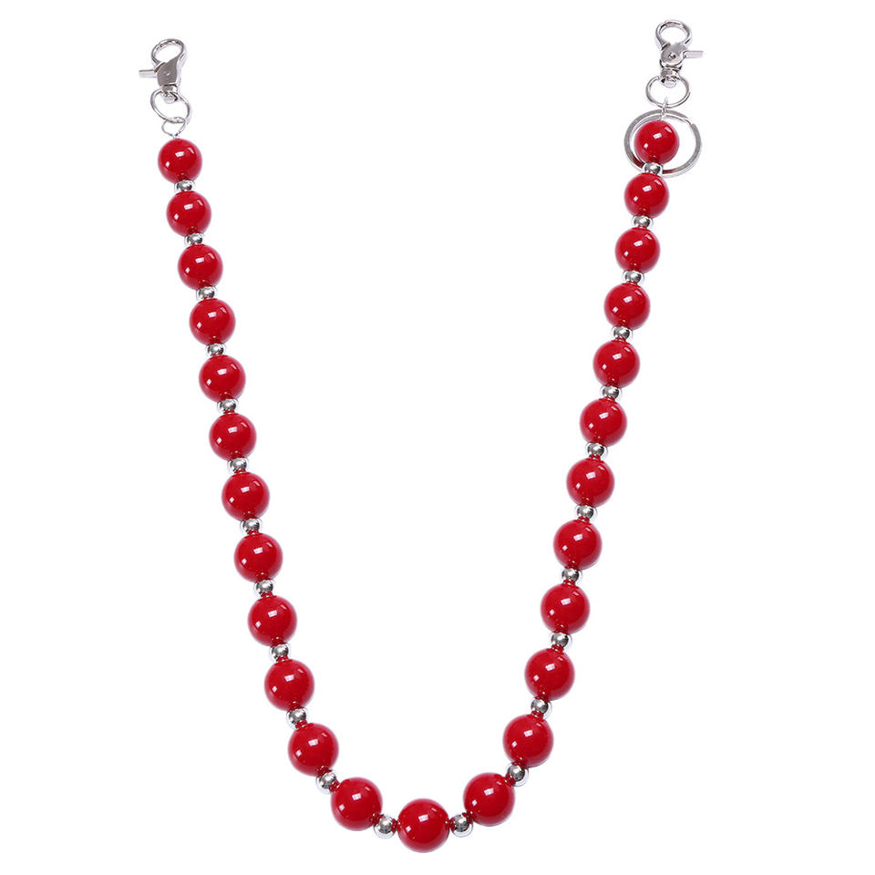 color:Single-layer red beaded pant chain with billiard ball and white ball.