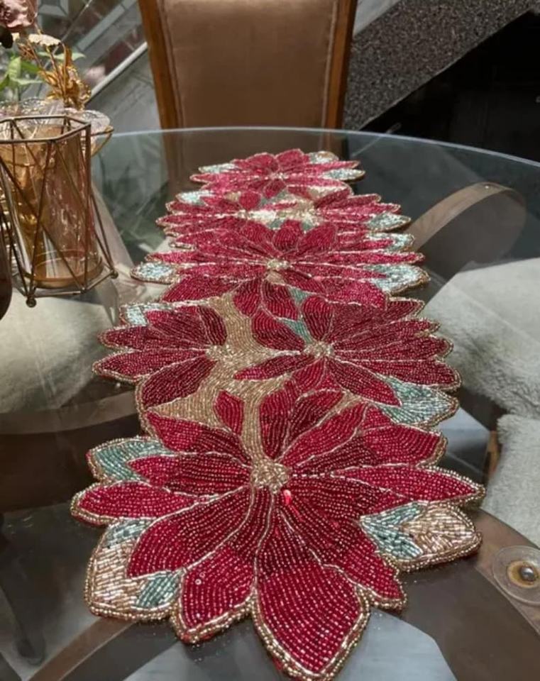 Camino de mesa con cuentas, camino de mesa de lujo, tapetes de mesa de lujo, artículos decorativos, regalo para su camino de mesa de boda