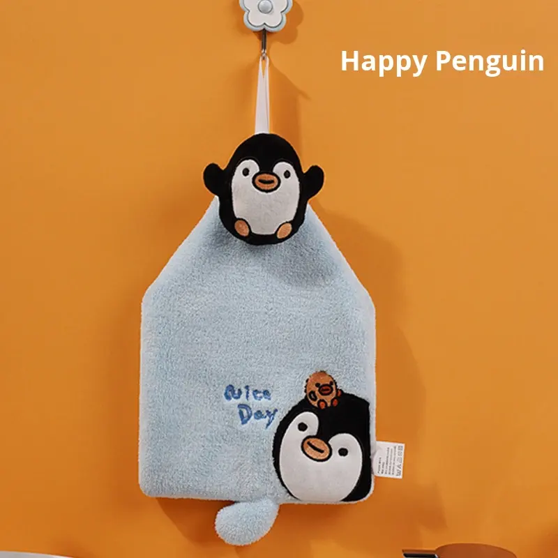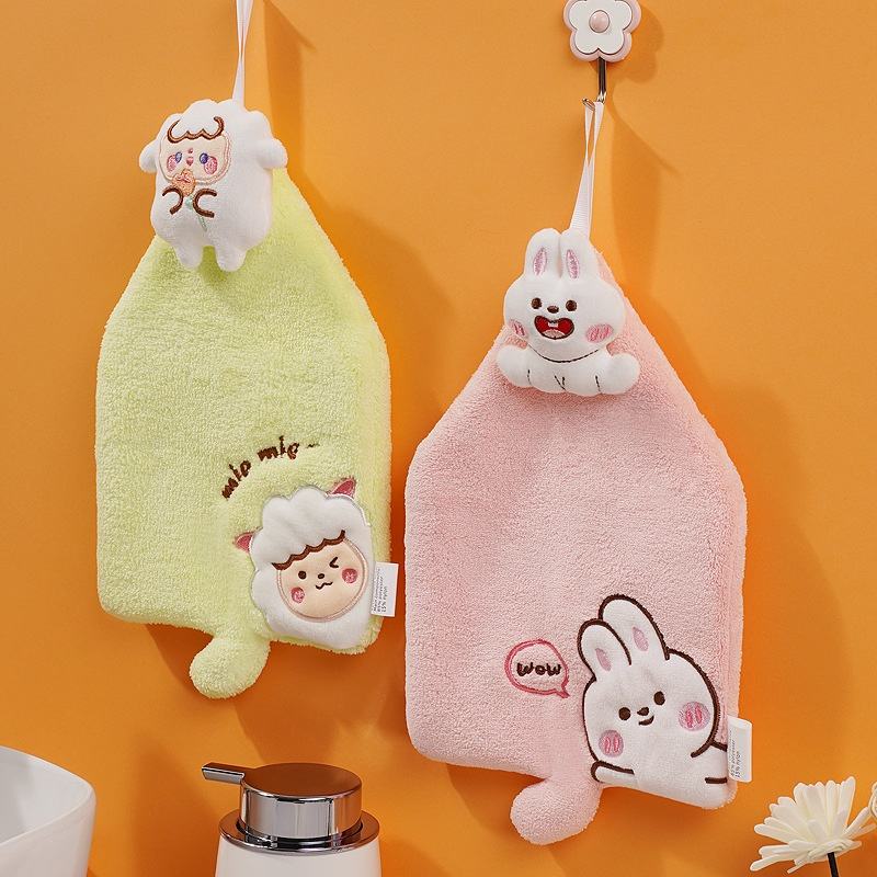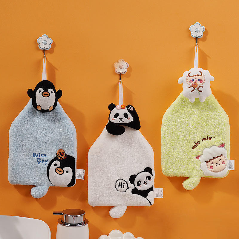 Toalla de Mano Colgante con Bordado de Oso, Terciopelo Coral, Gruesa, Absorbente, Paño de Cocina, Toalla de Regalo para Niños, Secado Rápido