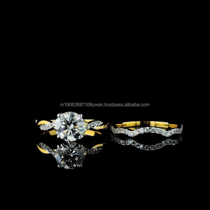 Hermoso juego de anillos de diamantes redondos 1,5 con moissanita brillante para compromiso, boda y Aniversario