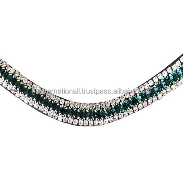 Pulsera de piel auténtica con acabado supersuave para mujer, brazalete de piel auténtica con cristales de color verde esmeralda, 3 filas