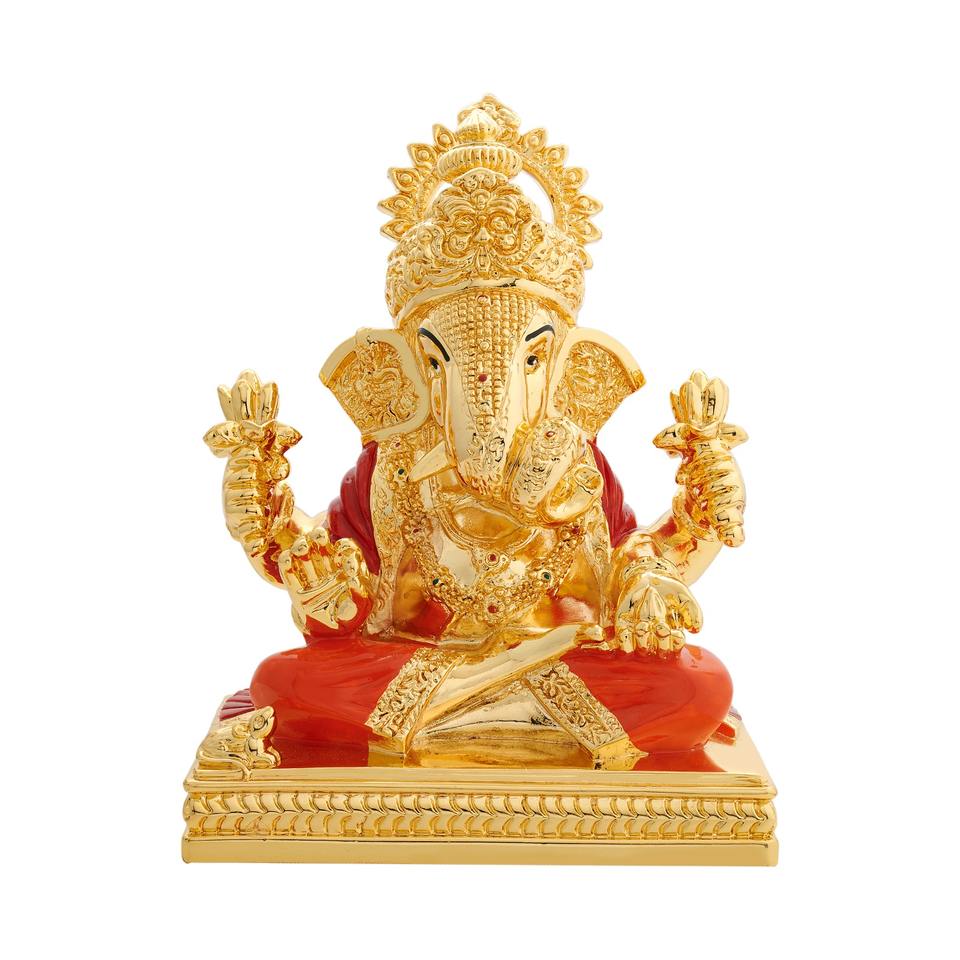 Hermoso Ídolo de Ganesh de 4 Pulgadas, Chapado en Oro Premium, Hecho a Mano, Ecológico, para Bodas, Regalos Corporativos, Festividades Religiosas y Diwali