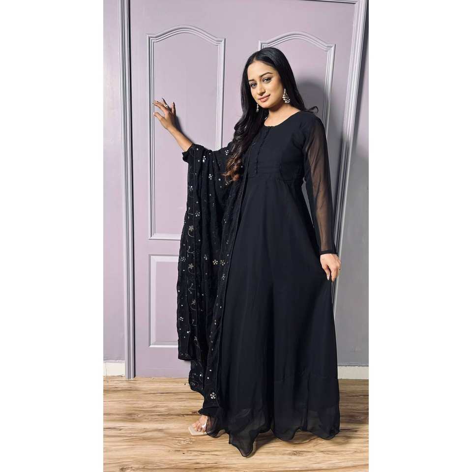 Hermoso vestido Anarkali con Dupatta y Pallu para fiestas nocturnas Mejora tu aspecto de fiesta