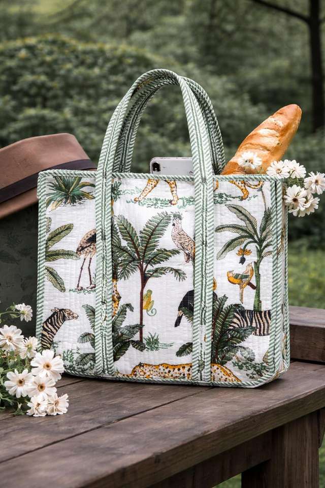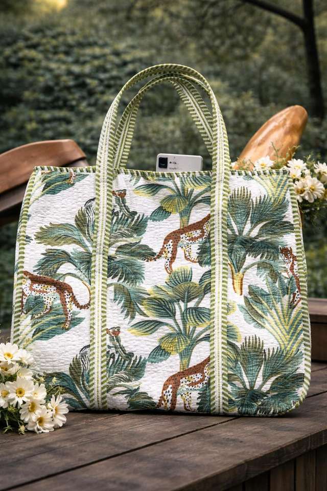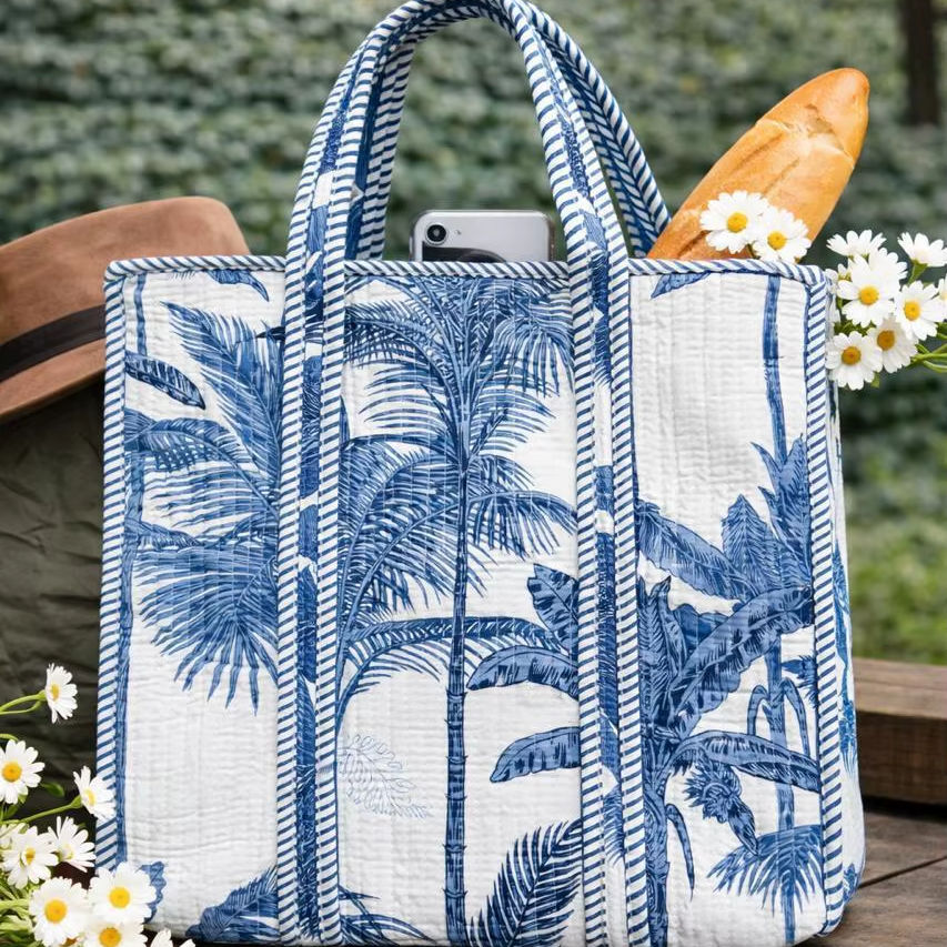 Hermosa Bolsa Tote Reversible Premium con Estampado de Bloques, Popular Bolsa Tote Acolchada de Algodón con Estampado a Mano de Bloques Indios, Bolsa de Mercado Estilo Hippie