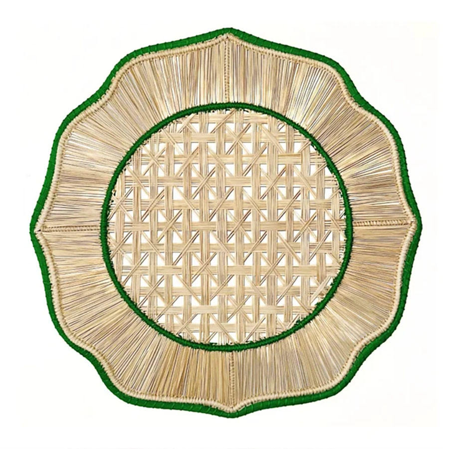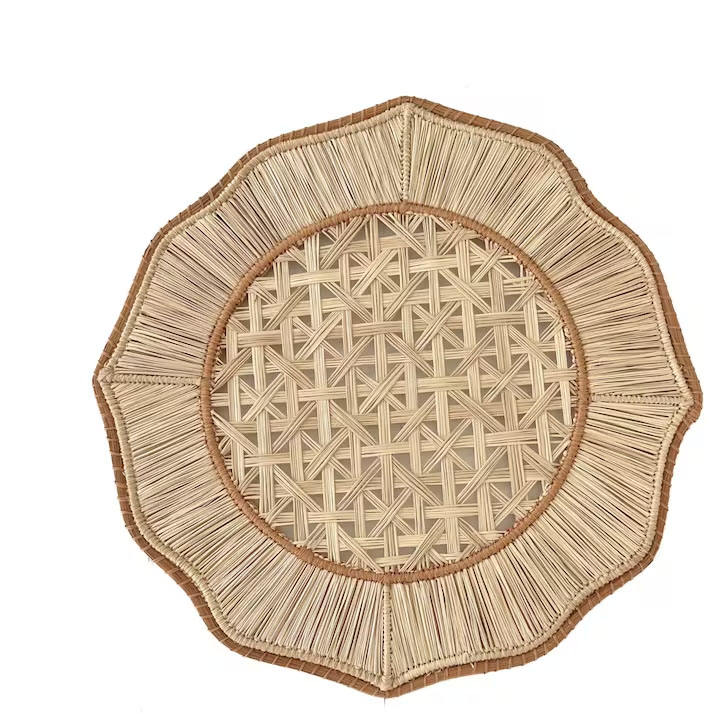 Hermosos manteles individuales de ratán azul ondulado con borde festoneado para mesa de comedor, platos de ratán estilo boho, personalizables desde Vietnam