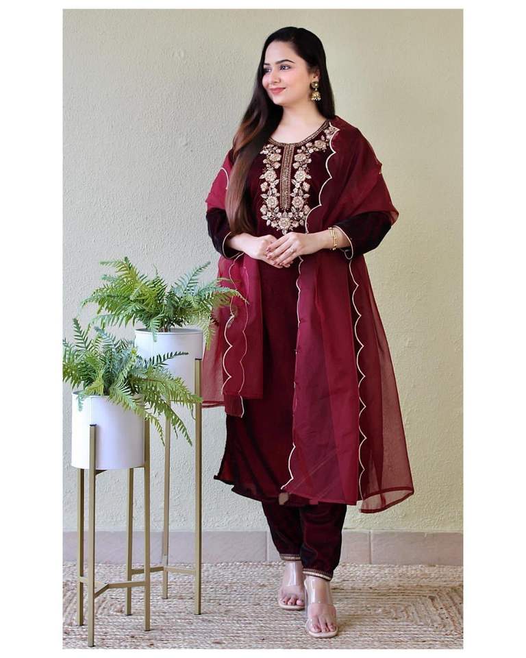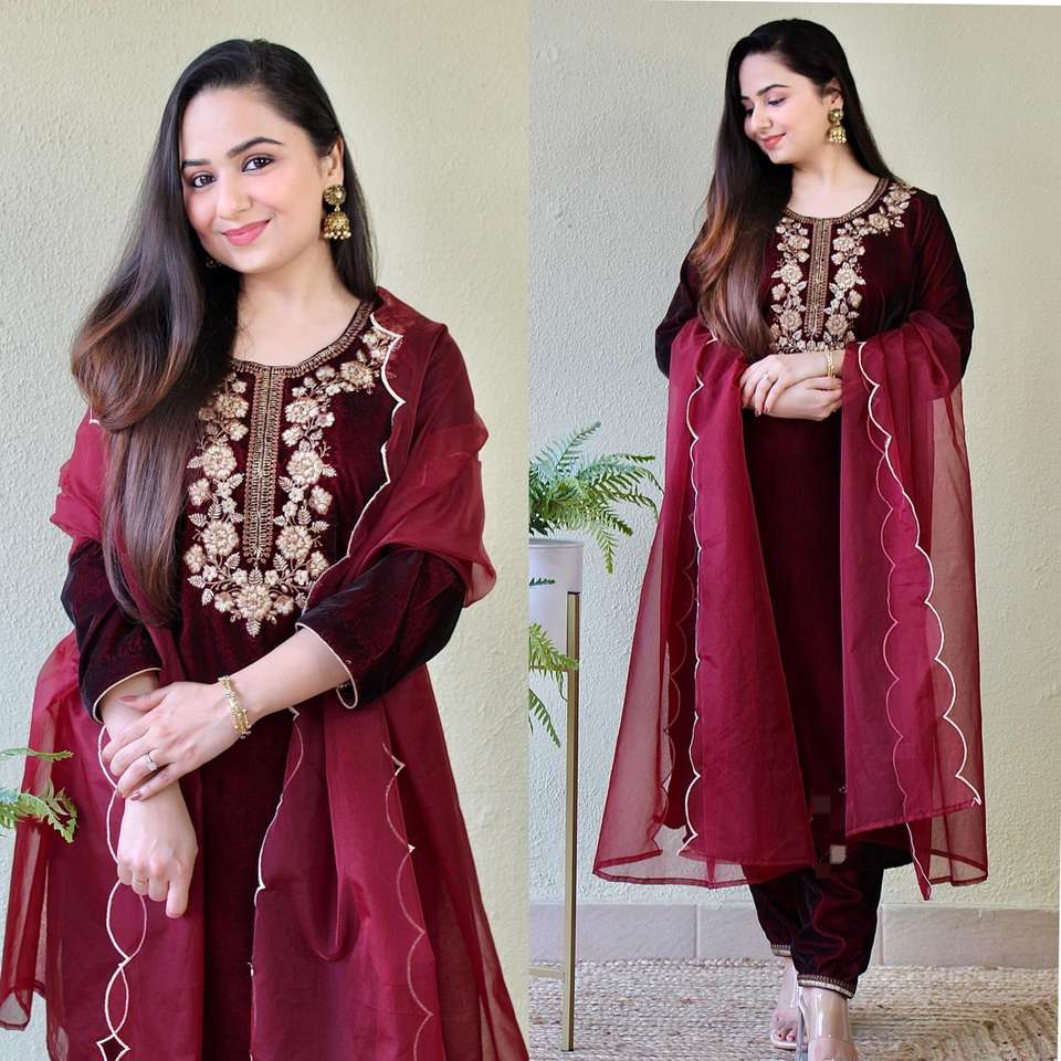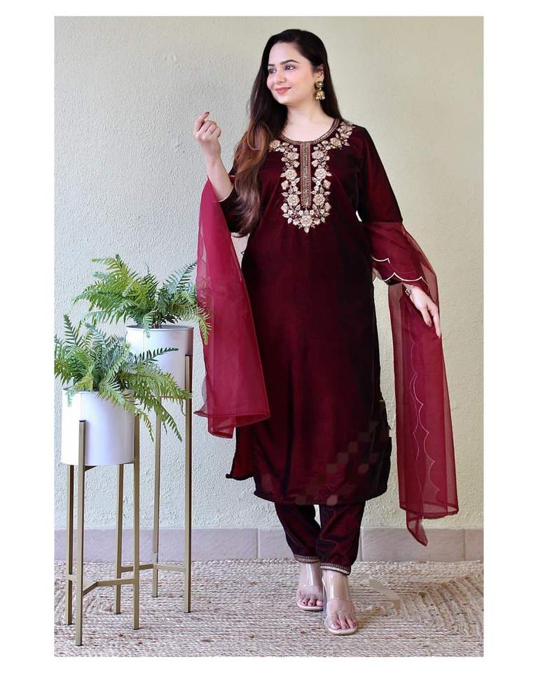 Beautiful Bollywood Style Fully Stitched Bottom Heavy Viscose Velvet With 5mm Embroidery Sequence Work Sleeve
