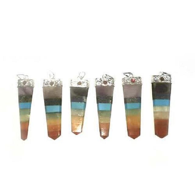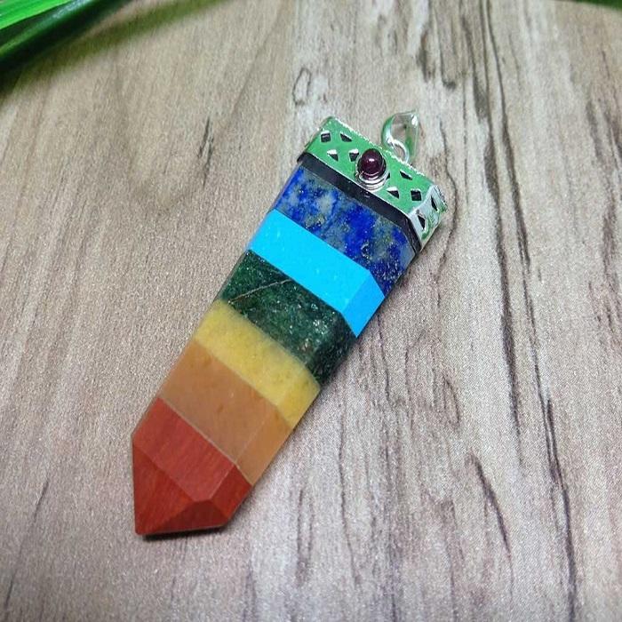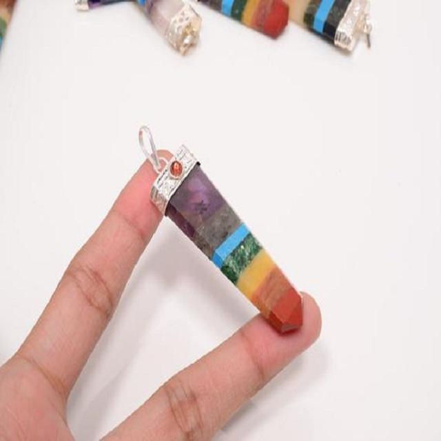 Hermosos colgantes planos de siete chakras unidos, colgantes de lápiz de piedras preciosas, colgantes de cristales para collar