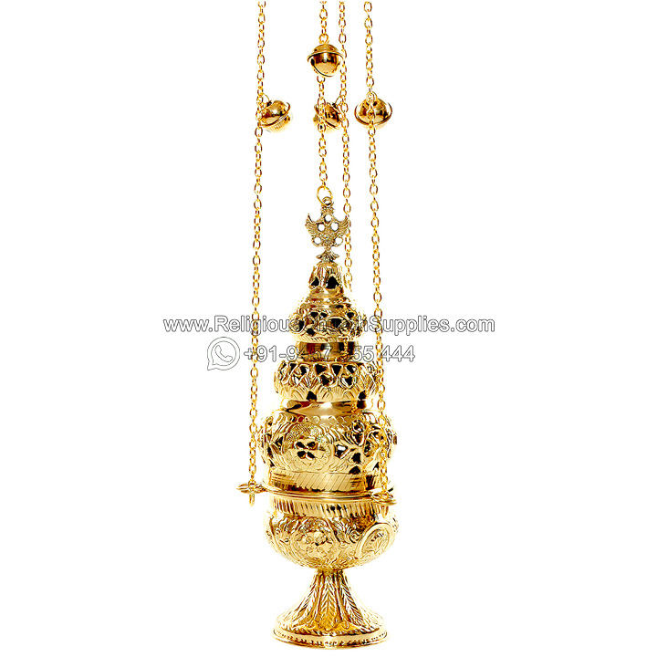 Incensero de latón con 4 cadenas y 12 campanas