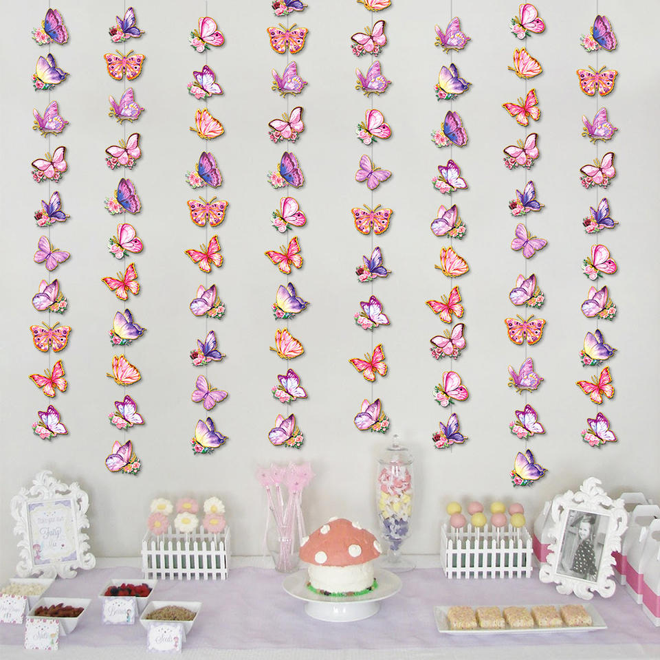 Hermosas decoraciones de cuerda de mariposa, tiras colgantes de Latte coloridas, pincho de fiesta, costura, mariposa decorativa
