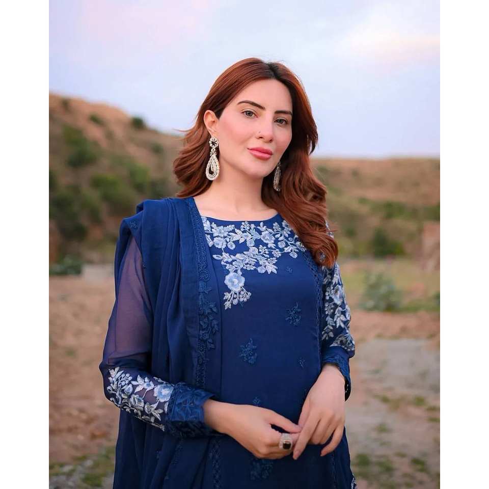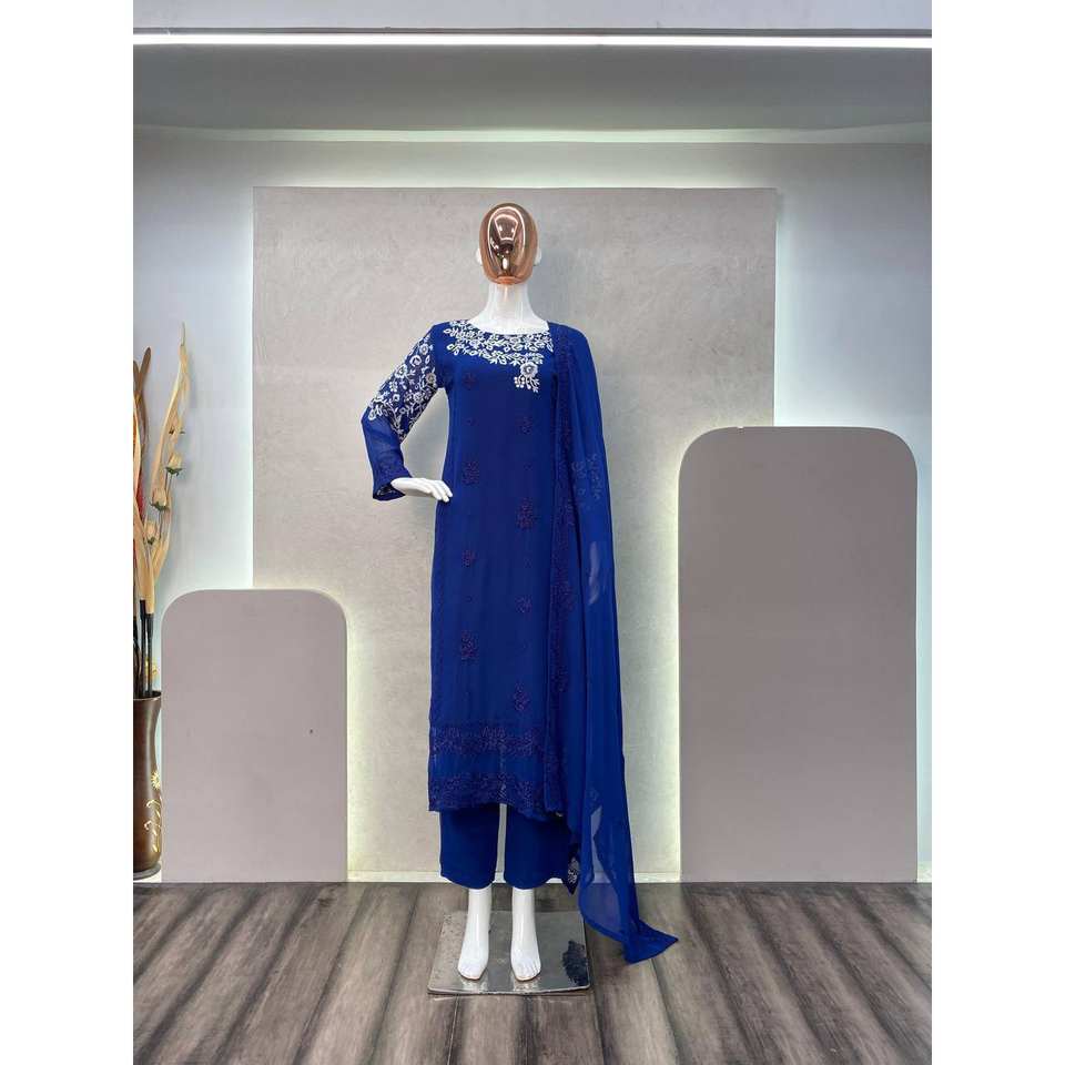 Hermoso Conjunto de Top y Falda de Gasa Azul con Dupatta para Mujer, Talla M, Ropa de Fiesta por Bhanderi -BE