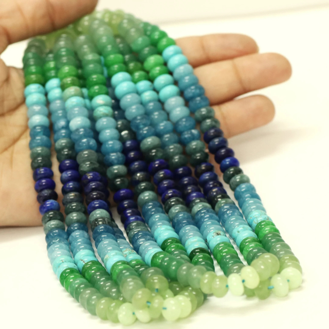 Hermosas Cuentas de Cuarzo Crisocola en Forma de Rondelle, Color Azul Verdoso, de 7 a 8 mm, Calidad AAA