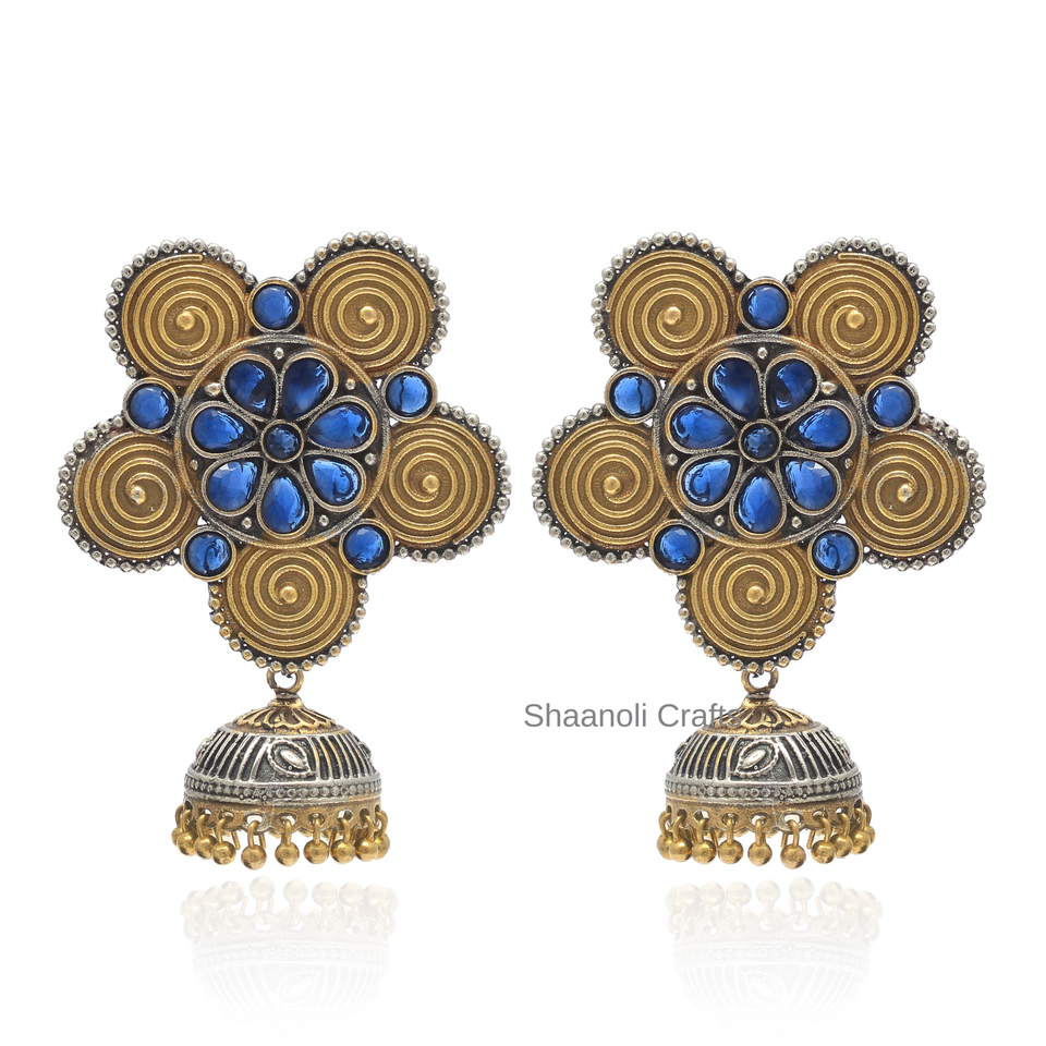 Hermoso patrón circular diseñador Jhumkaas pendientes plata oxidada diseñador pendientes para mujeres y niñas para fiesta de boda