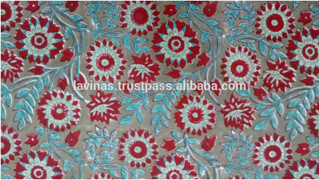 Hermosa tela de algodón estampada bloque de mano algodón crudo vestido Material bloque de mano telas estampadas 100% algodón tela textil para el hogar