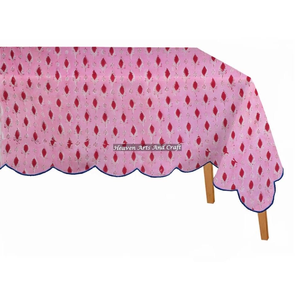 Hermosa Cubierta de Mesa Rectangular con Borde Festoneado, Estampada a Mano en Algodón, para Bodas, Restaurantes, Cocina y Comedor, Fabricante