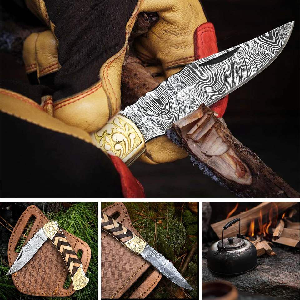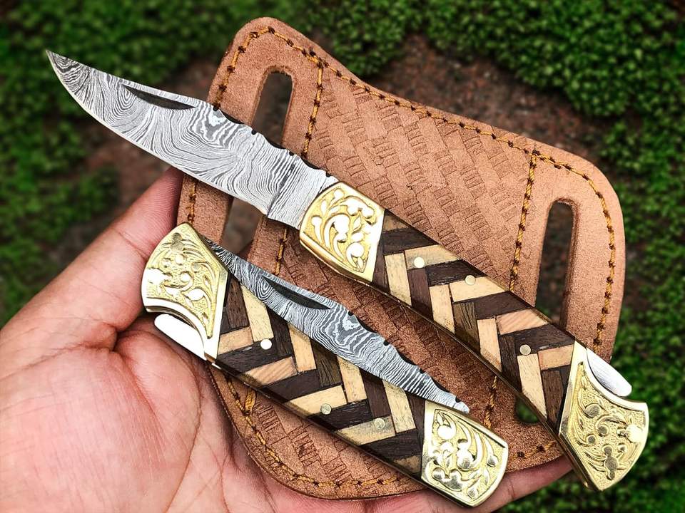 Customized Damascus steel folding knives