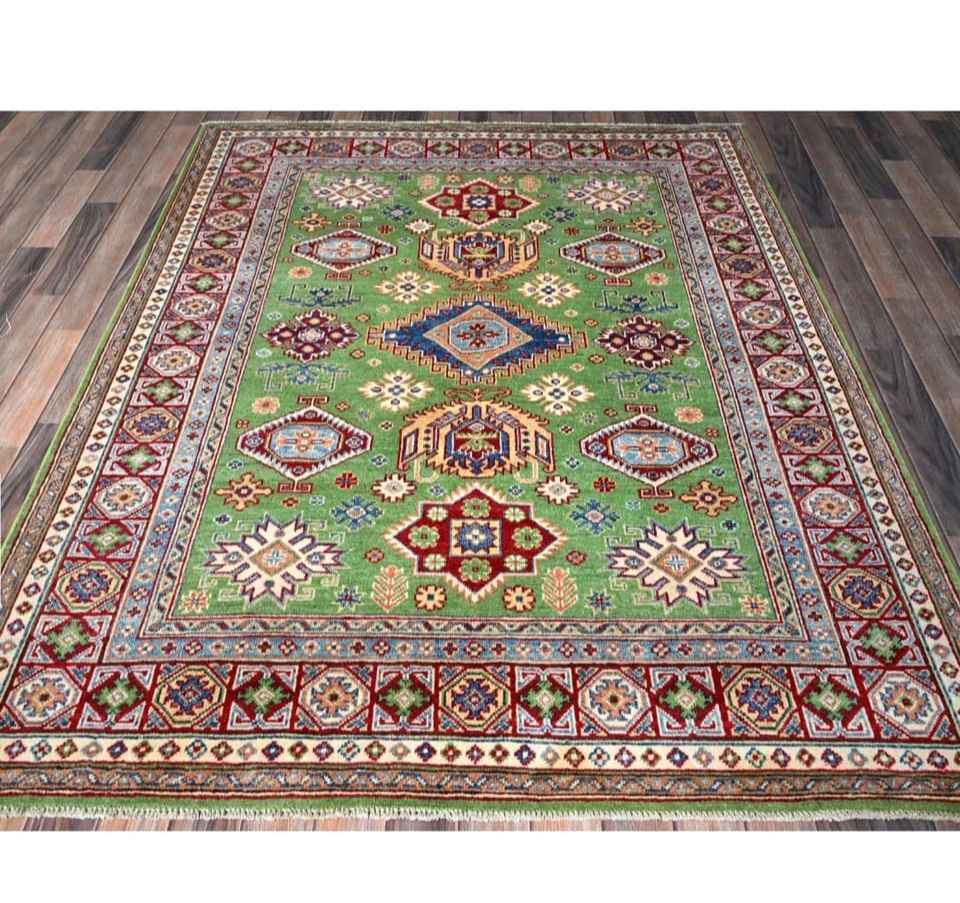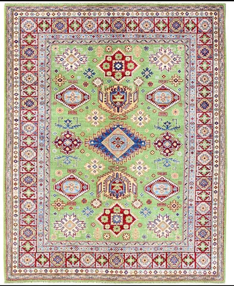 Tamaño personalizable hermoso patrón abstracto alfombra de lana verde Kazak diseño de medallones geométricos algodón ejercicio oración Picnics Mat