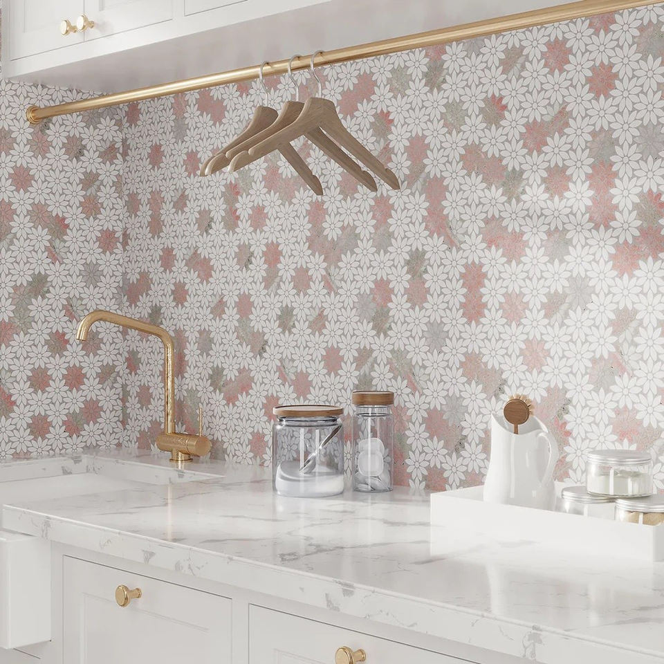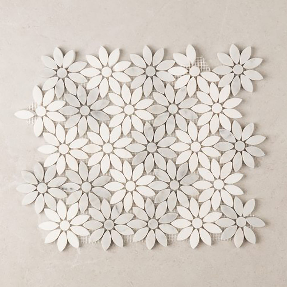 Hermoso Diseño de Azulejos para Pared, Azulejos de Mármol Blanco con Diseño de Flores, Mosaico de Mármol para Paredes