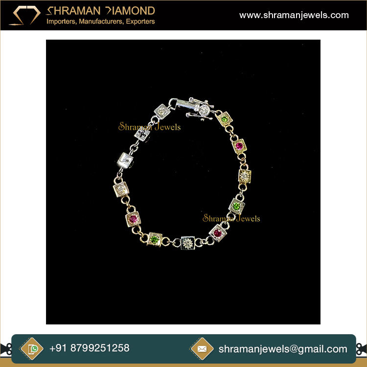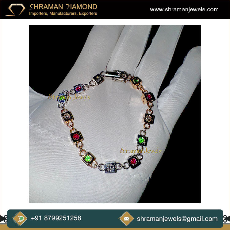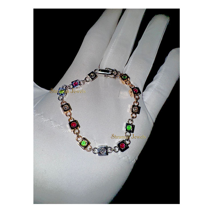 Hermoso Diseño, Regalo de Compromiso, Plata de Ley 925, Unisex, Personalizado, con Piedras Multicolores, Brazalete de Diamantes de Moissanita CZ de 7 Pulgadas