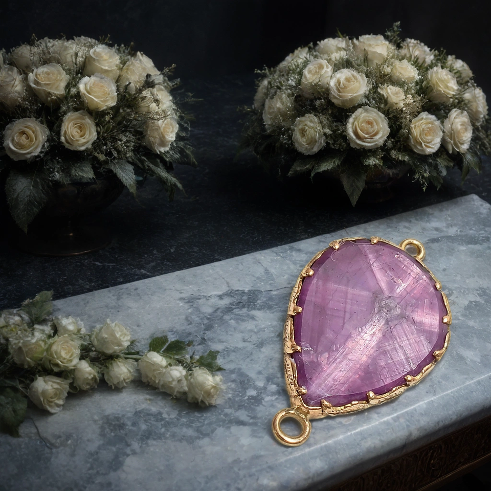 Hermoso diseño de laboratorio creado púrpura rubí cristal piedra gota de agua COLLAR COLGANTE 18K Cadena de eslabones de oro para la fabricación de joyas DIY