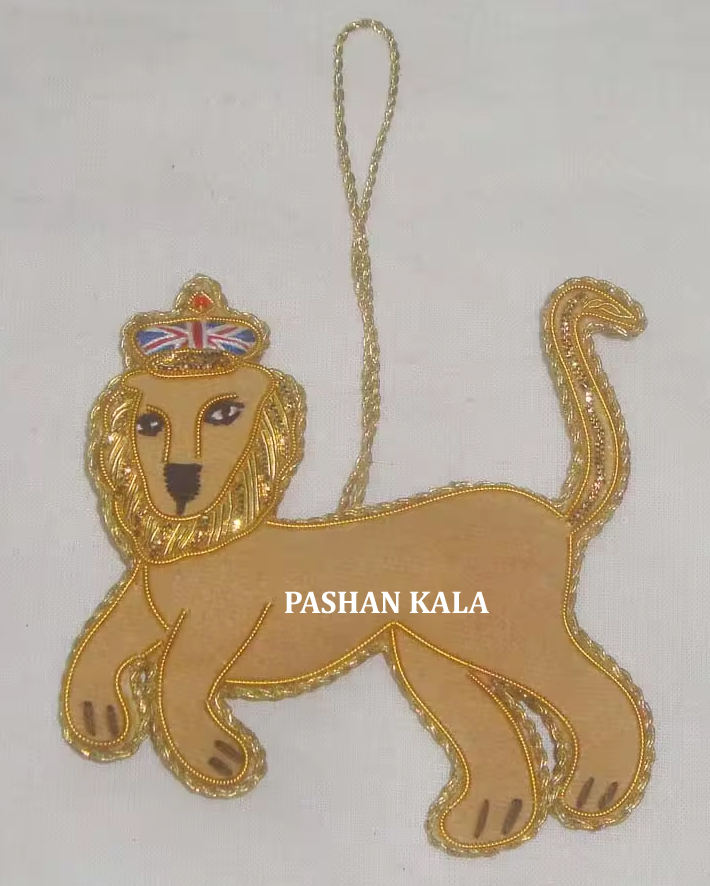 Hermoso diseño de bordado dorado Zari con trabajo de cuentas en forma de corazón adorno colgante para el hogar y la decoración de la fiesta de Navidad