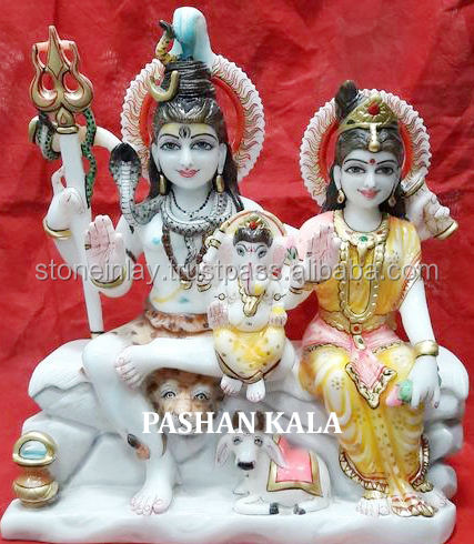 Escultura de mármol blanco puro para adoración, diosa Shiv Parvati sentado en la montaña, hermoso diseño