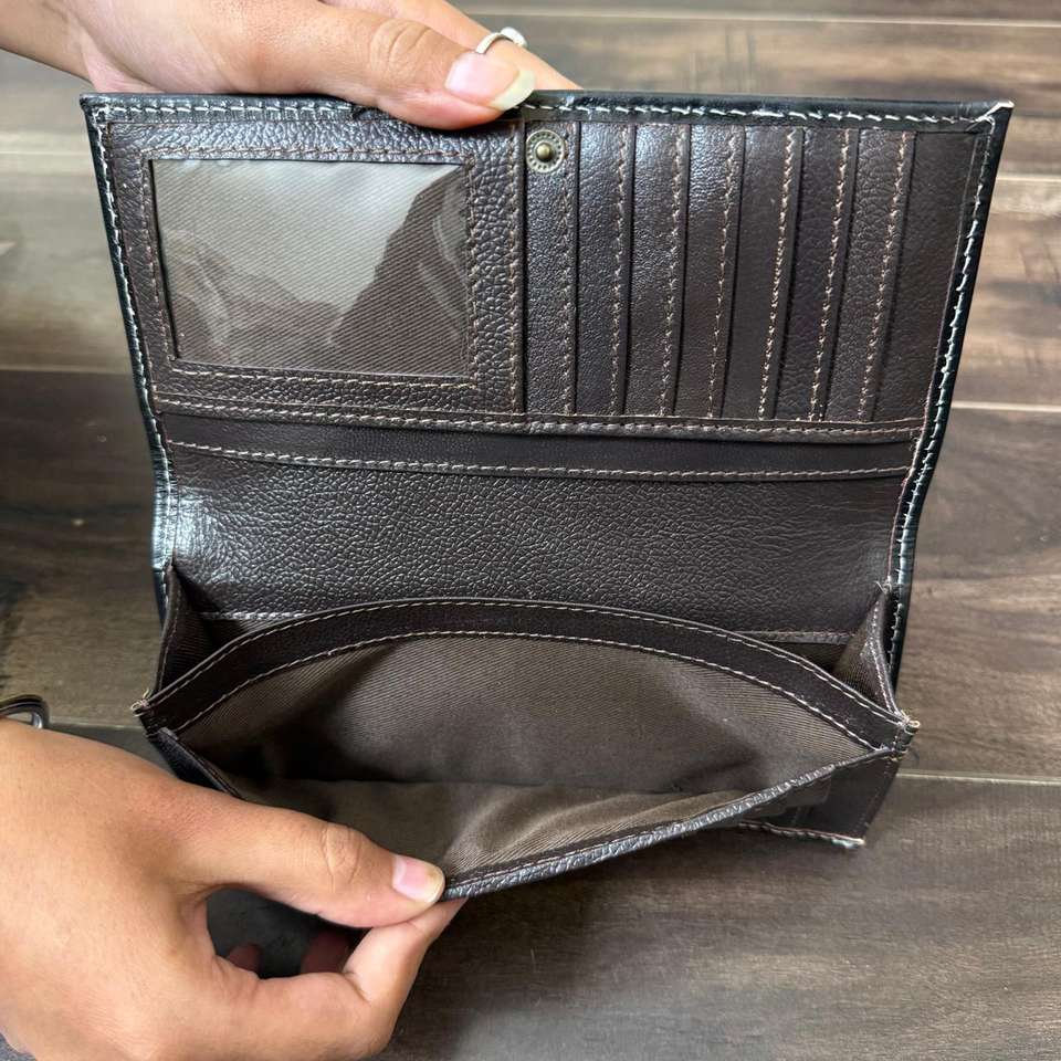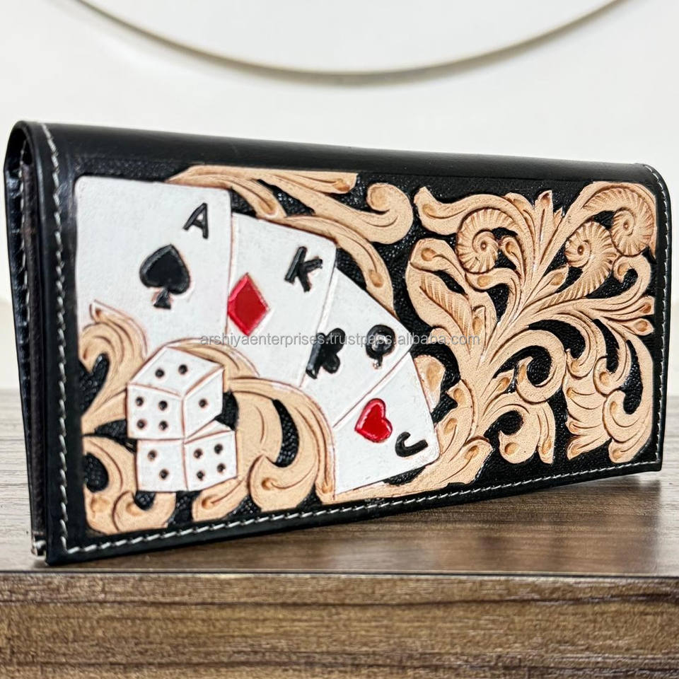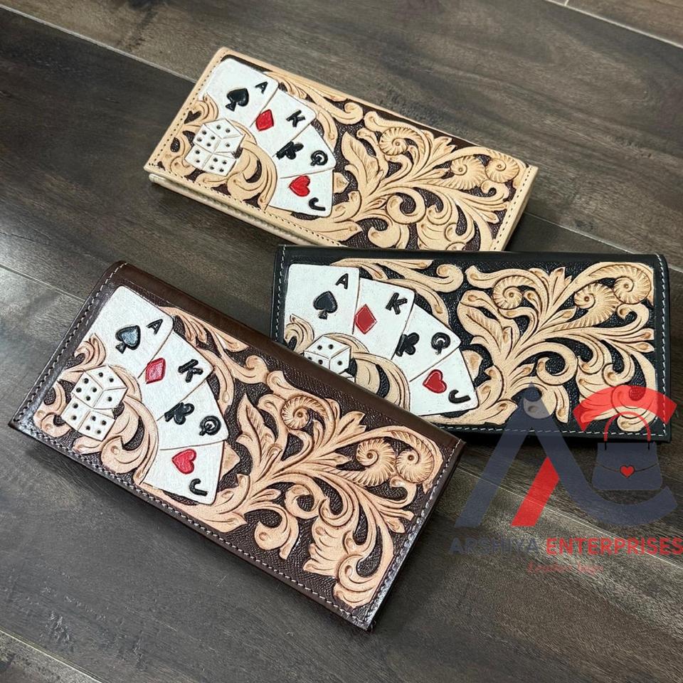 Cartera larga de diseño para hombre, diseño floral de tarjeta elegante con cuero tallado a mano, tarjetero de inspiración occidental