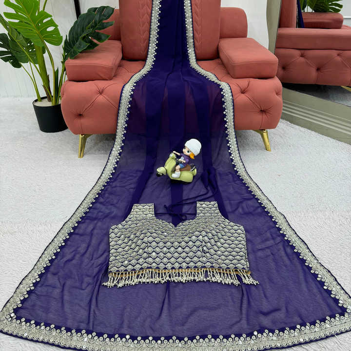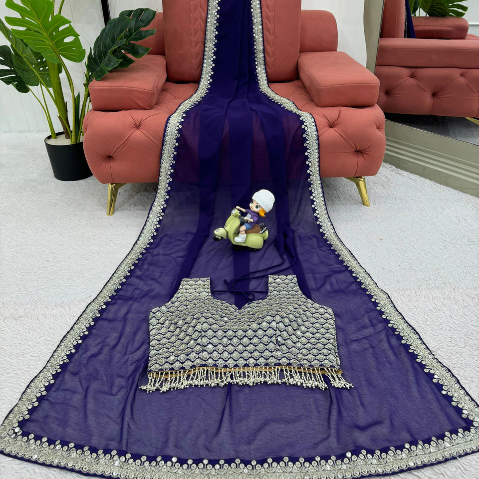 Hermoso Sari de diseñador con trabajo de hilo y secuencia y blusa