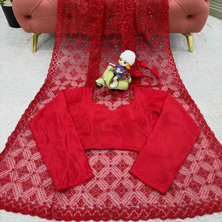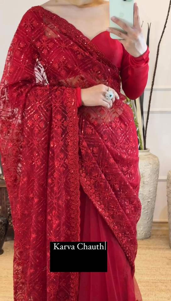 Hermoso Sari de diseñador con trabajo de hilo y secuencia y blusa