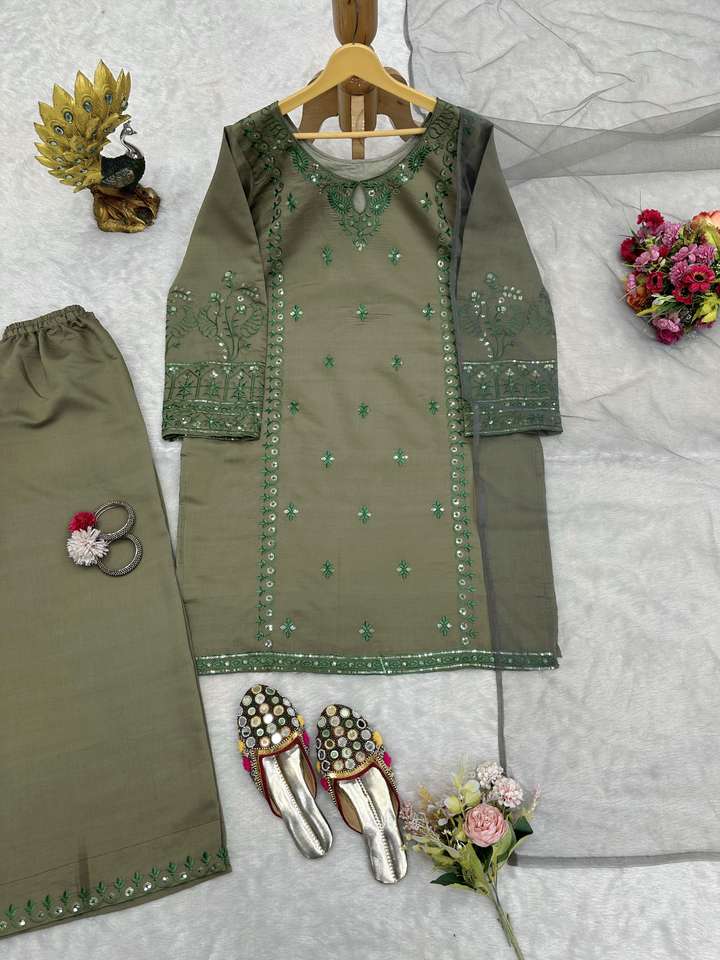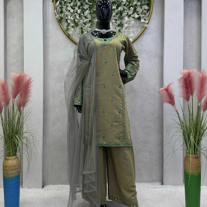 Hermoso Salwar Kameez de Diseñador para Mujer con Interior y Plazzo-Dupatta, Trabajo con Hilos y Lentejuelas para Fiestas