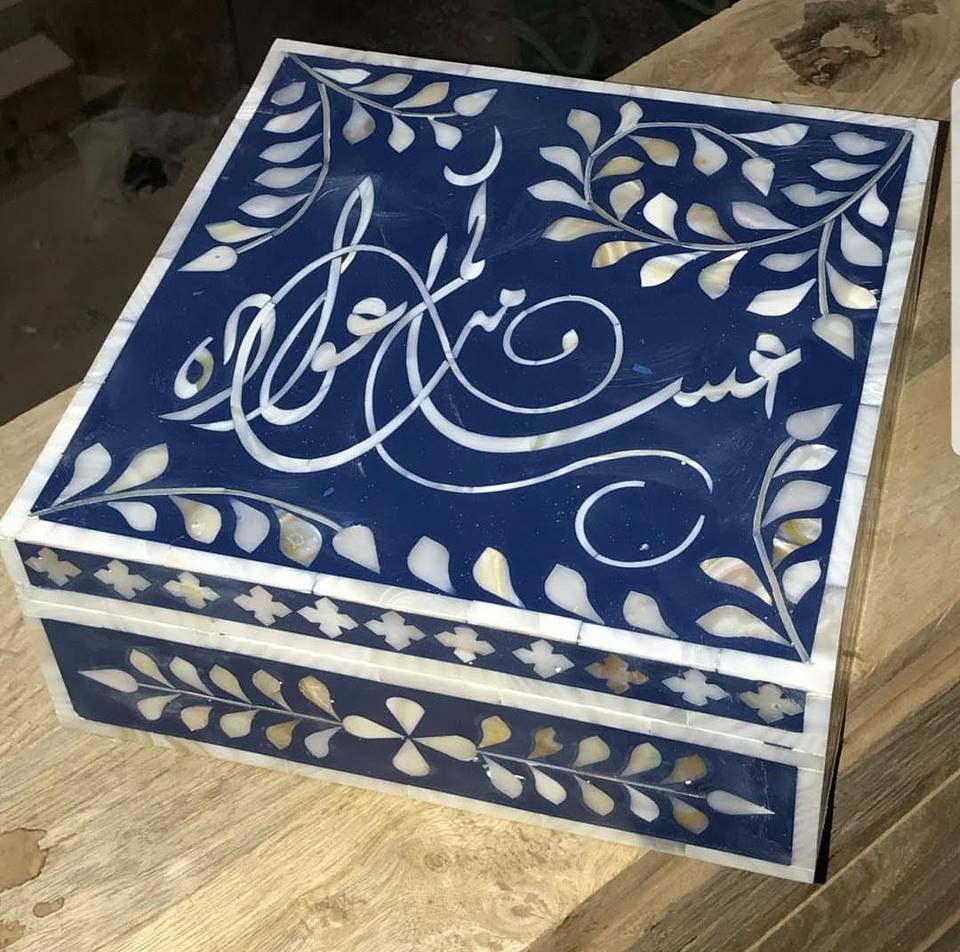 Hermoso joyero ecológico con incrustaciones de hueso de amor, caja de regalo de almacenamiento decorativa cuadrada hecha a mano, artesanías naturales, exportación global