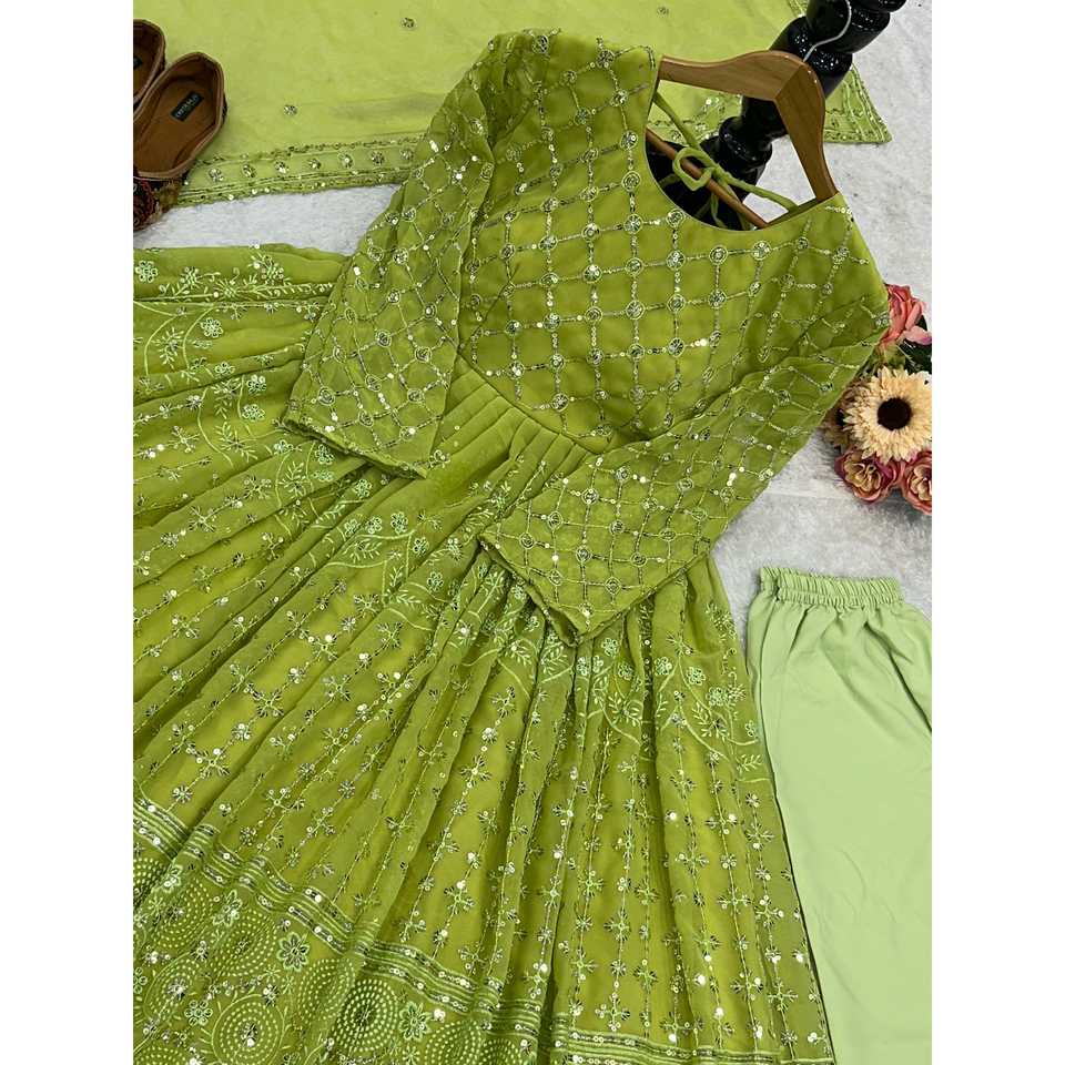 Hermoso vestido Anarkali bordado con ropa y accesorios musulmanes tradicionales Dupatta