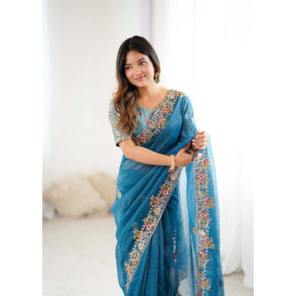 Hermoso Sari bordado para fiestas para vestir profesionalmente