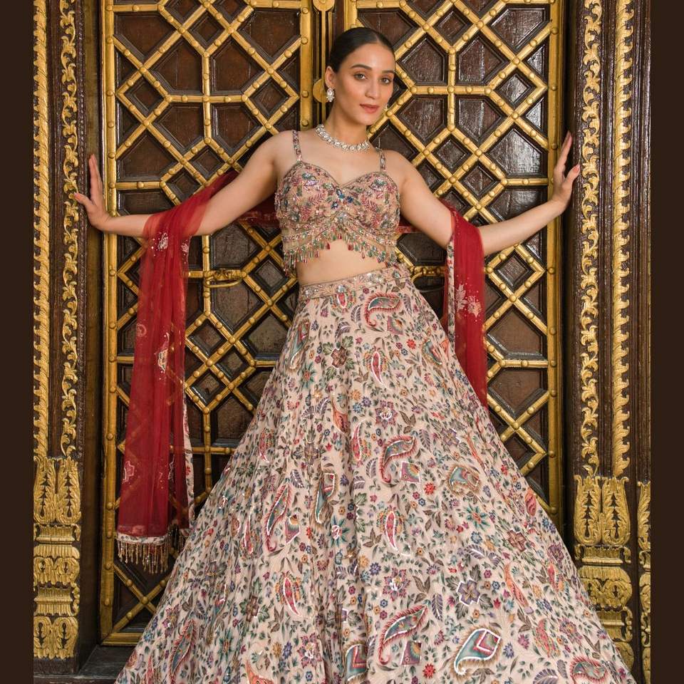 Trabajo:Zardozi pesado más trabajo de hilo y lentejuelas